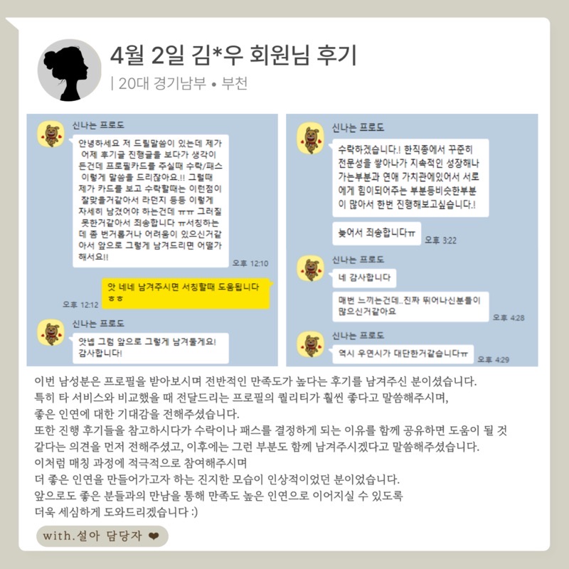 소개팅 다음날, 양측의 피드백을 바탕으로 다음 방향을 제안드립니다